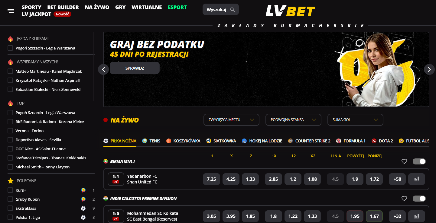 Promocje kursowe to kolejny element, który wyróżnia LV BET na tle innych bukmacherów. Codziennie można skorzystać z „Grubego Kuponu” – zakładu z podwyższonym kursem nawet o 30%, co pozwala na jeszcze większe zyski przy dobrze skomponowanym kuponie. Miłośnicy e-sportu mogą natomiast liczyć na promocję „Esports Full Buy”, która oferuje weekendowe zakłady bez podatku, pod warunkiem spełnienia minimalnych wymagań dotyczących obrotu.